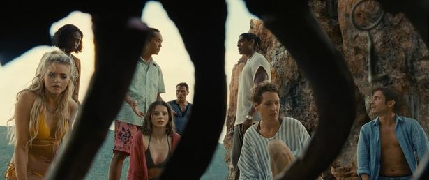 一緒にビーチへ来た他の観光客たちの中で、突然体調を崩す人物が現れる。さらに気づくと、子どもたちの体が急激に成長していることが分かる。時間の感覚が明らかにおかしくなっていた。
